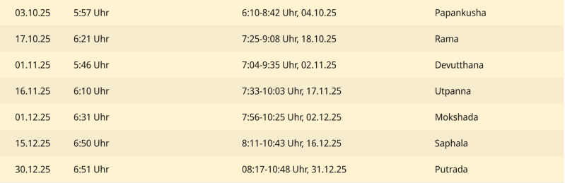 Der Ekadashi Kalender